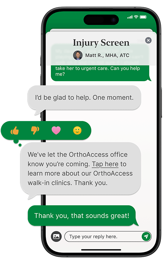 - Reserve OrthoAccess Walk-In Clinic Spots: Secure your spot at one of our OrthoAccess clinics for same-day care.